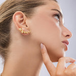 Everlasting jewelry you can count on. These 18K gold-plated stud earrings feature a cascading row of polished spheres for a sleek, modern silhouette. Style them with our gold breaded bracelet for an effortlessly refined look.