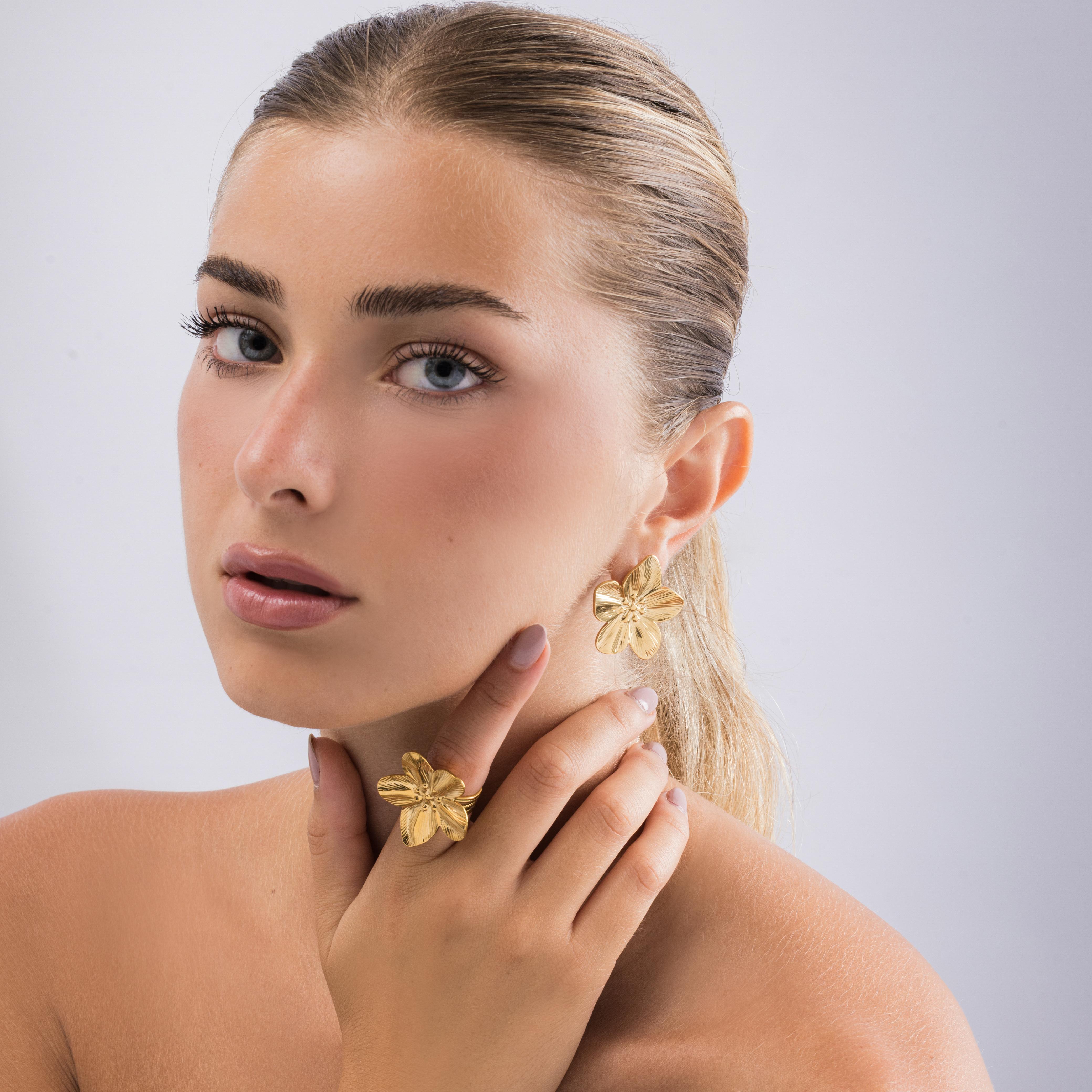 Everlasting jewelry you can count on, the fleur d'or set embodies timeless sophistication with its delicate floral-inspired design and luxurious golden finish. Elevate your ensemble by wearing both pieces together for a harmonious and refined look, or style them individually to add a touch of elegance to any outfit, creating versatile combinations that effortlessly transition from casual gatherings to special occasions.