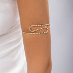 Everlasting jewelry you can depend on. The Gold molten arc arm bangle features a fluid, sculptural design that curves gracefully around the arm, embodying modern elegance with an artistic edge. Wear it alone as a bold statement or pair it with our Golden sculpted cuff ring.