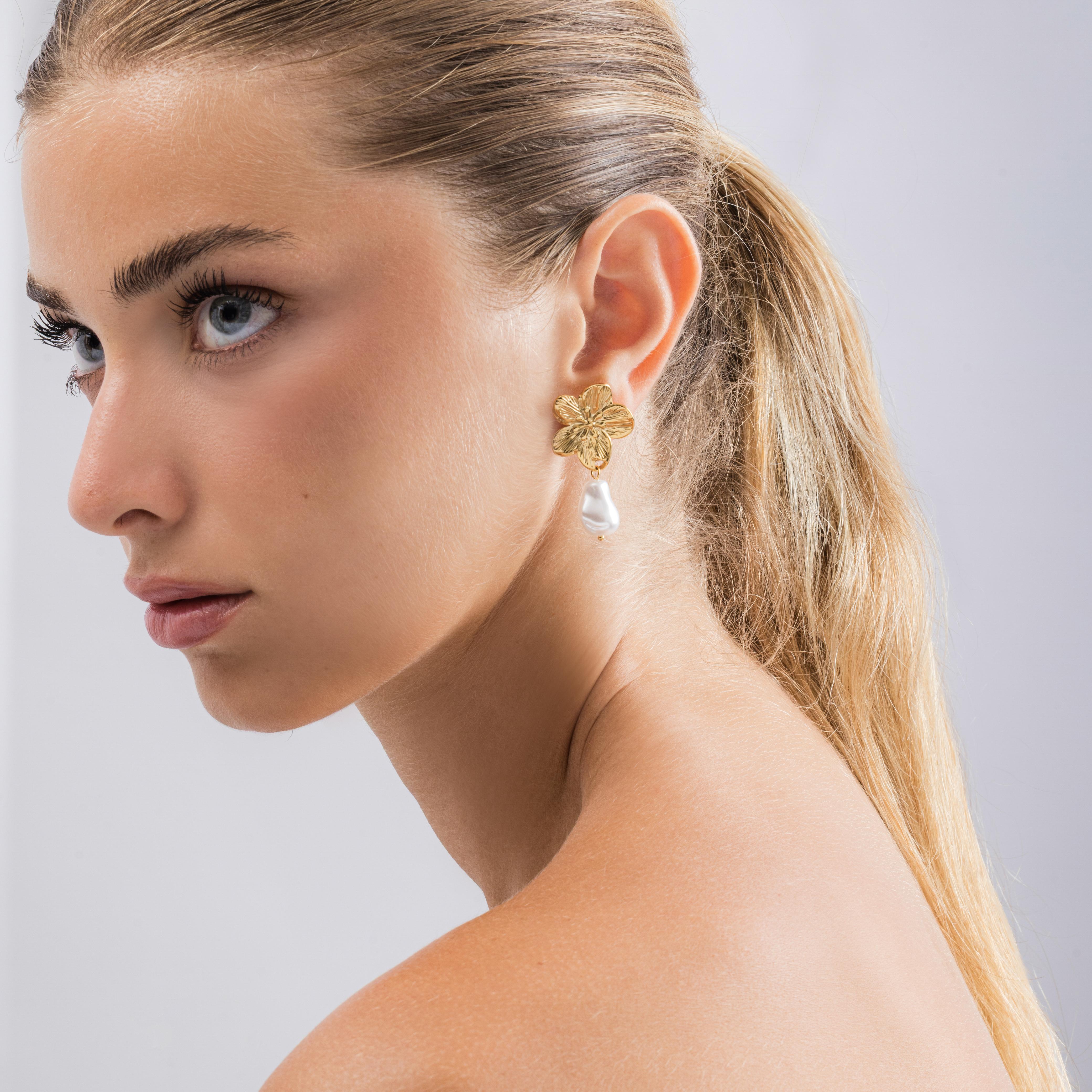 Everlasting jewelry you can count on. The golden bloom pearl drop earrings feature delicate floral studs that gracefully give way to luminous pearl drops, blending elegance with a touch of whimsy. Perfect for elevating both casual and formal looks, they pair beautifully with our golden bloom open ring for a cohesive finish.