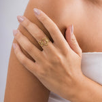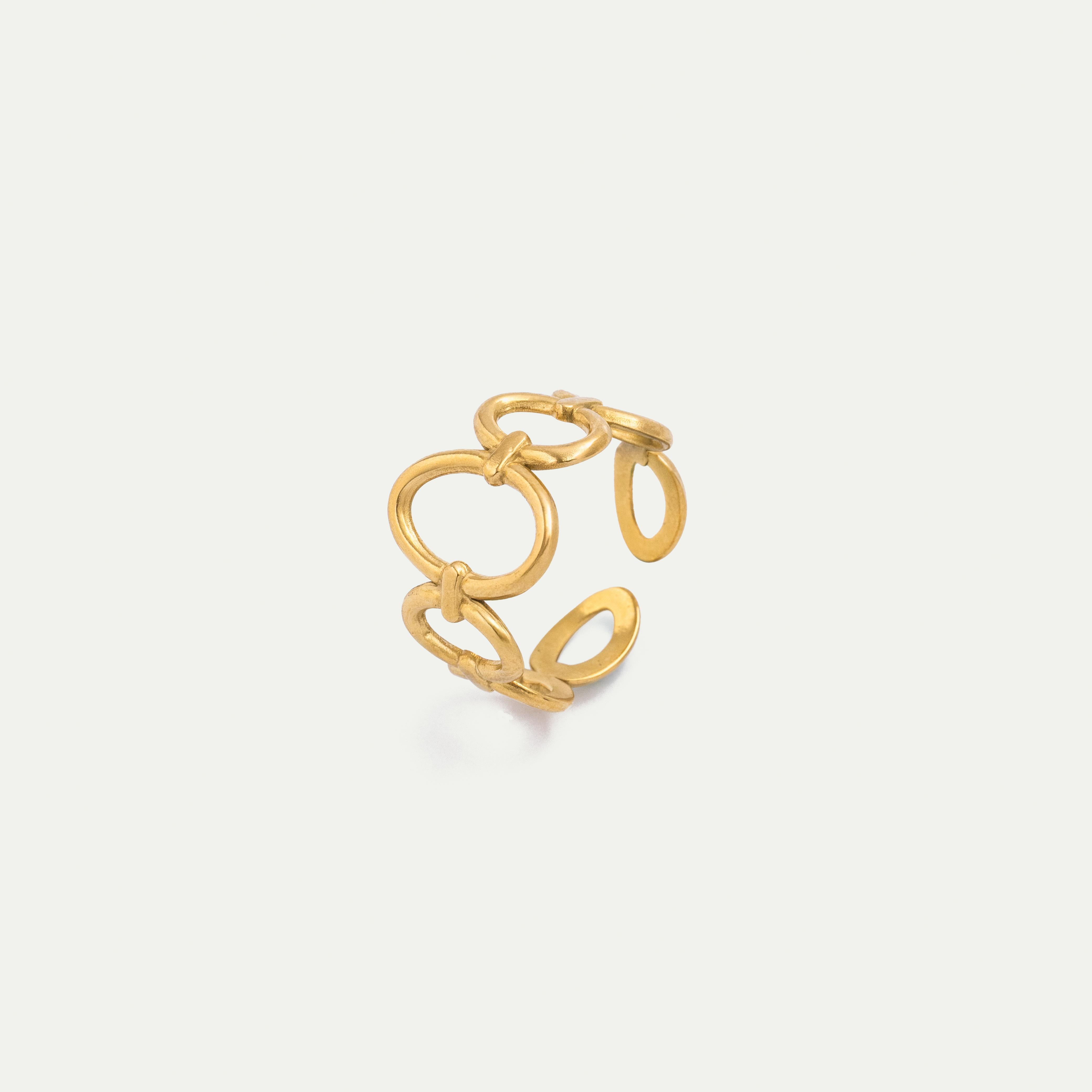 Timeless jewelry you can rely on. This golden link oval ring features a bold, interlocking design that adds texture and edge to your everyday style. Wear it stack with our Golden linked oval bangle and oval linked earrings for a modern effect.