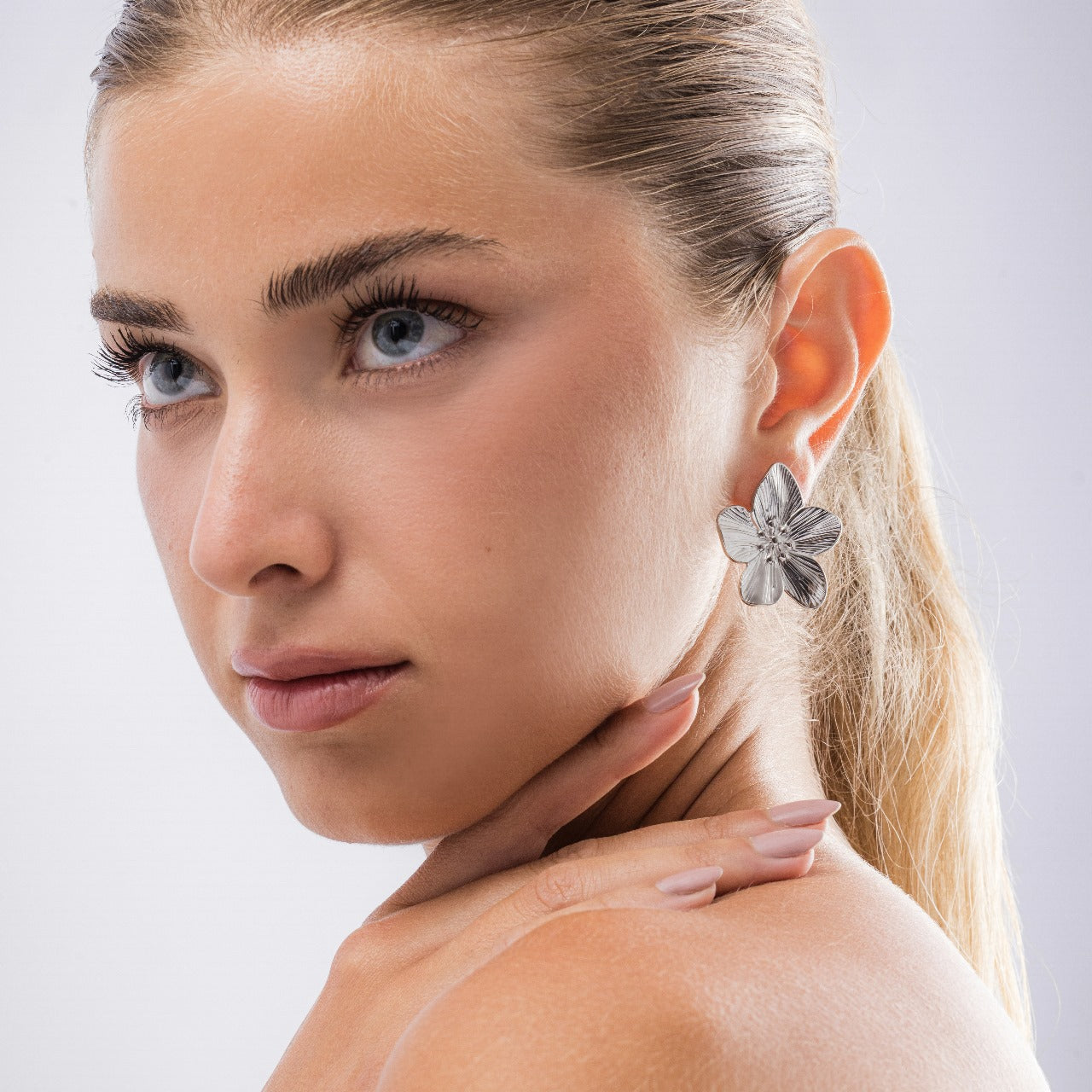 Timeless jewelry you can depend on. These bold floral stud earrings bring a touch of nature-inspired elegance to any look. Wear them with our Silver broad molten gold knot bracelet to let their beauty bloom.