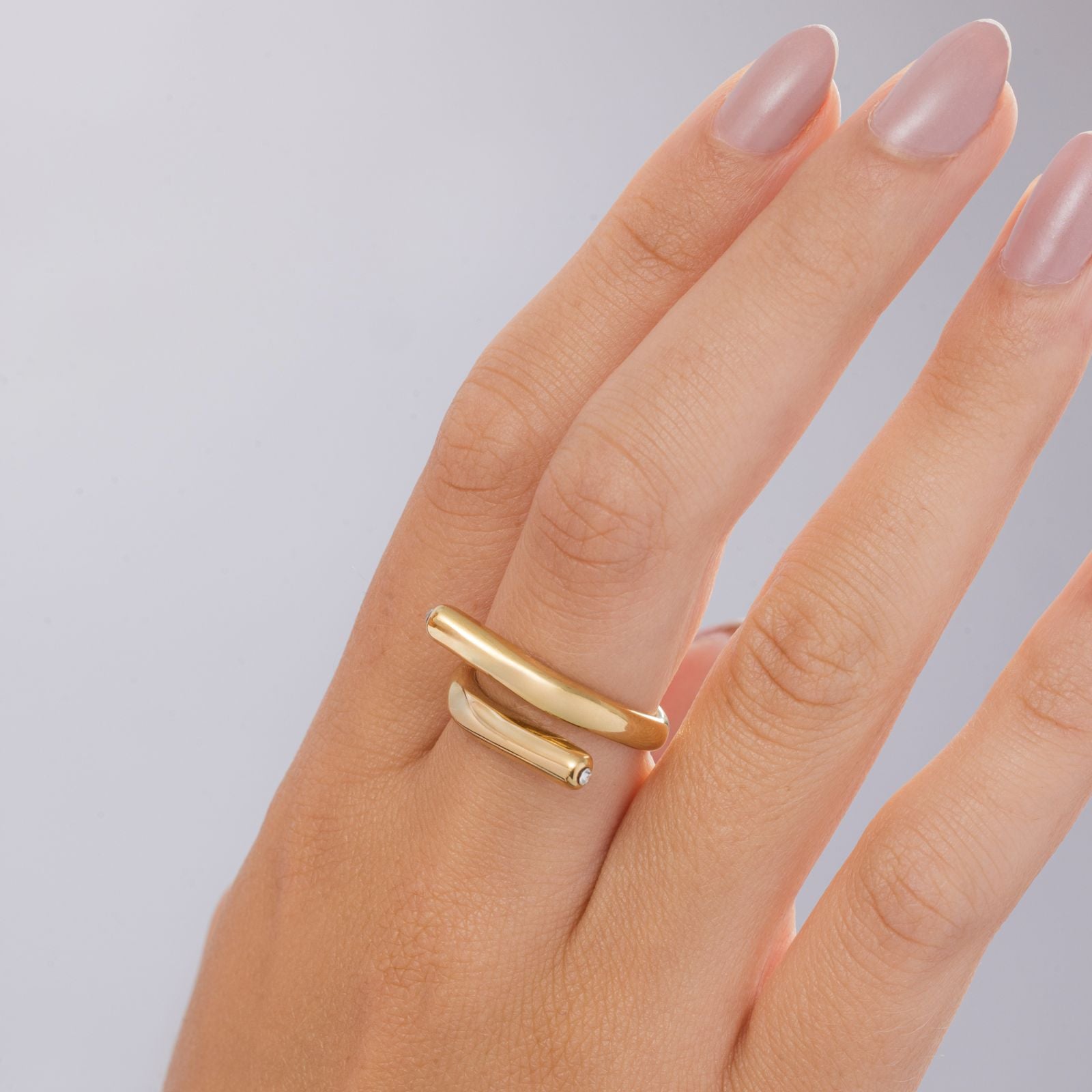 Timeless jewelry you can rely on. This sculptural 18K gold-plated ring features a sleek, modern wrap design with a subtle crystal accent for just the right touch of sparkle.Pair it with our crystal clear earrings for an effortlessly chic look.